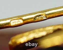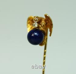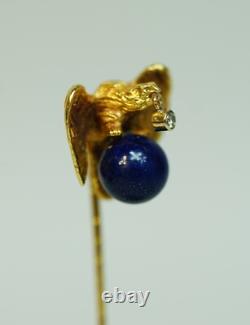 The pin was recently inspected by a professional jeweler to confirm the gold purity and the authenticity of the stones, and it has been verified as 18k yellow gold and all antural stones. The pin comes with its original presentation box, where it was found. It originates from an estate sale in Paris. The eagle only: 17mm x 16mm. Total weight: 6.15 grams.