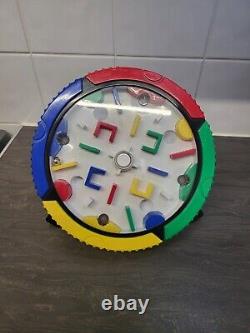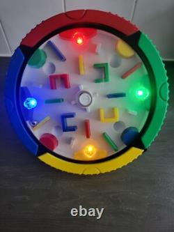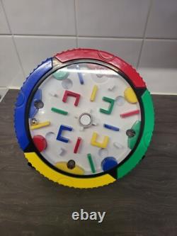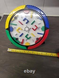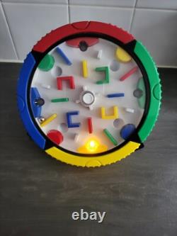 Rare Rubik's Electric Game Rock Roll Maze Toy Lights Sounds Music Pinball machine. This is preowned and has some age related blemishes and marks. Please see pictures for further details. Good structural and working condition. Press button on back to release and reveal battery compartment.