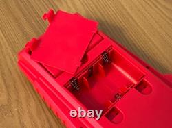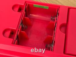 The Plastic Covered Display Window/Area remains in Very Good cosmetic order with various evident surface markings/scratches/wear applied throughout. The Colourful Transfer Stickers/Internal Card Inlay across the entire console remains in Very Good cosmetic condition with some lesser wear/tear/markings applied throughout. Both Decals to the top & bottom of the console remain in Excellent overall cosmetic condition with various surface wear/tear apparent but exhibits no lifting or damage. The console may have suffered from some lesser discoloration (from strong light/sun, mostly to the white coloured areas) but still retains most of it's original outer bright red matt hue/color.