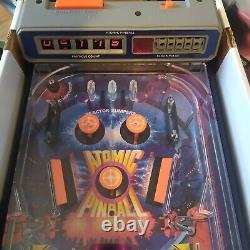 Beautiful condition Tomy Atomic Pinball. The plastic screen is as close to mint as possible with barely a mark on it. The electric still works perfectly and the machine is fully operational. The box is great and still holds perfect shape.