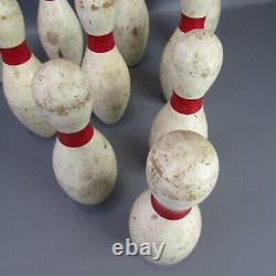 This is a Vintage Yard Bowling Set with 10 Pins (7.5 Height) and 2 Wooden Balls. Fresh from a local estate in solid shape with major scuffing.
