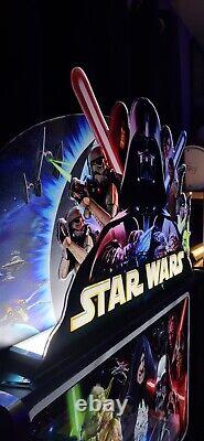 Le topper exclusif conçu par Szabo's Arcades pour le cabinet de flipper et la machine d'arcade Star Wars Arcade 1up. Cela est imprimé en reverse sur deux couches d'acrylique pour une dimension supplémentaire totalisant plus de 1 pouce d'épaisseur. Une lumière est également incluse, pouvant être branchée sur une prise murale avec un variateur ajustable. S'installe en quelques minutes sans matériel nécessaire.
