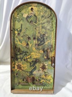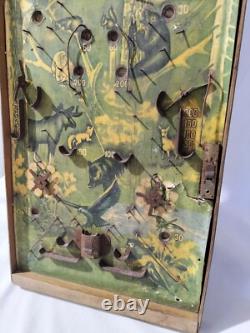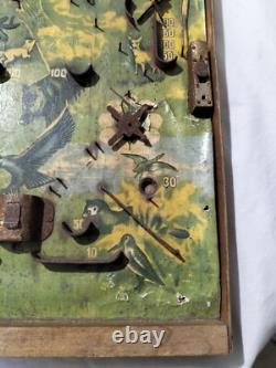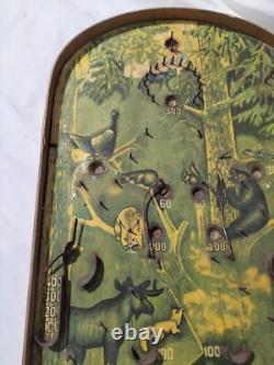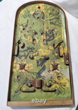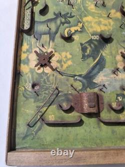 Rare Original des années 50/60. Machine à flipper en bois pour table. Thème des animaux nord-américains / forêt. Tel que trouvé - non restauré - rustique - vintage utilisé - voir les photos.