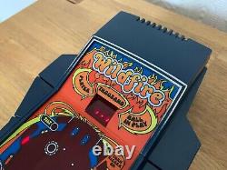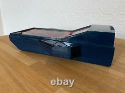 La zone/terrain de jeu de l'écran est dans un état cosmétique presque pristine avec très peu de marques/rayures visibles. Le détail de l'ensemble du terrain de jeu est en parfait état cosmétique sans usure/marques notables. Les détails argentés autour du bord extérieur du terrain de jeu ont subi une usure majeure pour la grande majorité d'entre eux. Il y aura toujours des marques/rayures/bémols/décoloration évidents sur l'unité en raison de son âge et de son utilisation antérieure, mais cela est à prévoir pour la plupart des jeux vintage usagés de cet âge. Veuillez étudier les photos pour voir l'objet exact que vous recevrez. L'objet nécessite 6 piles de taille (AA/LR6) (qui ne sont pas incluses dans cette vente) ou un adaptateur secteur AC (également non inclus). Assurez-vous de vérifier que la tension et la polarité du connecteur que vous utilisez sont correctes avant d'utiliser tout adaptateur AC. Si vous n'êtes pas certain, je vous conseillerais d'utiliser simplement des piles. N'utilisez en aucun cas des adaptateurs AC provenant d'ordinateurs portables/téléphones mobiles/autres matériels aléatoires car ils risquent très probablement d'endommager l'unité ! La boîte (sections inférieure et supérieure) est incluse et est également en bon état cosmétique général avec quelques déchirures à un coin de la section supérieure.Il y a une usure/une déchirure de surface évidente sur toutes les façades présentes et également une usure/une déchirure/un écrasement et des plis évidents sur la plupart des coins et des bords, mais généralement en bon état pour son âge. La boîte semble n'avoir pas souffert de trop de décoloration due à une lumière vive/soleil. Le plateau en poly d'origine est inclus dans un bon état global partiellement endommagé/écrasé avec des taches de saleté présentes partout.