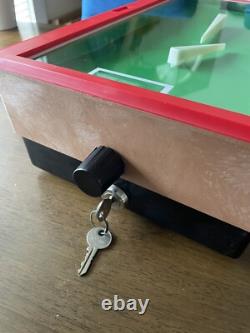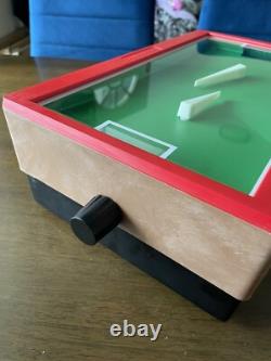 Construction vintage de qualité pesant 3,2 kg. Ils ne les fabriquent plus comme avant. Fonctionne avec une pièce de dix centimes. Chaque partie dispense 6 billes métalliques qui sont libérées une à une pour tenter de marquer dans le but de l'adversaire. Le jeu est rapide et amusant, et peut être très compétitif.Livré avec deux clés pour ouvrir le réceptacle de pièces intégré. C'est un collectible de jeu solide, bien construit, non électrique, TRÈS RAREMENT VU - veuillez consulter les photographies pour les détails et n'hésitez pas à poser des questions. Parfait pour votre collection de jeux vintage, bar de sous-sol, pub, homme-caverne ou soirée jeux ! Jeu difficile à trouver en état impeccable et inutilisé comme celui-ci.