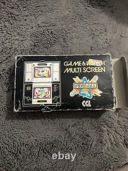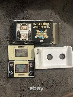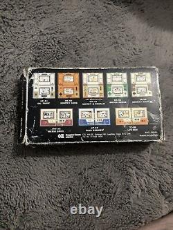 Ceci est un système portable Nintendo Game & Watch vintage de 1983, spécifiquement le modèle Pinball. Il est de couleur noire et est livré dans sa boîte d'origine. L'appareil est sans région et dispose d'une prise casque pour la connectivité. Fabriqué au Japon, il a été entièrement testé et n'a jamais été utilisé.