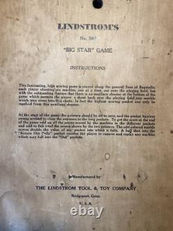 Le jeu est en excellent état et a été bien entretenu au fil des ans. Il porte la marque Lindstrom et a été fabriqué aux États-Unis dans les années 1940. Le jeu est sur le thème des fusées et de la science-fiction, ce qui en fait un article parfait pour les collectionneurs de jouets vintage et classiques. Ne manquez pas l'occasion de posséder cette pièce rare de l'histoire !