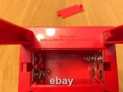 Le couvercle de la batterie est présent et se ferme/verrouille de manière sécurisée. Esthétiquement, l'état de l'article est généralement presque neuf. Le cadre en plastique rouge principal reste en très bon état cosmétique avec diverses usures/marques moins importantes apparentes. L'écran LCD est en excellent état avec peu ou pas de marques/rayures présentes. Tous les 3 autocollants avant sont en état presque neuf avec seulement quelques marques/rayures de surface mineures ici et là. L'autocollant du compartiment à piles est présent en dessous dans un état impeccable.Il y aura des marques/rayures/imperfections/décolorations sur l'unité en raison de son âge et de son utilisation antérieure, mais cela est à prévoir sur la plupart des jeux vintage usagés de cet âge. Veuillez étudier les photos pour voir l'article exact que vous recevrez.