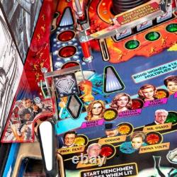 Rassemblez des gadgets du Q Branch au fur et à mesure que les billes de flipper sont éjectées à travers le toit d'une Aston Martin DB5 sculptée sur mesure. Brisez les cibles de chute d'Osato Chemicals pour combattre SPECTRE à la base de fusée Bird One.Et retenez votre souffle sur le jetpack magnétique défiant la gravité alors qu'il transporte les billes à travers le plateau de jeu. Les machines à flipper incluent le système Insider ConnectedT primé de Stern, qui permet aux joueurs d'interagir avec le jeu et un réseau mondial de joueurs de différentes manières.